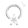 Het sieraad dat je hier ziet, is een eindeloze ring. Hij is echter niet écht eindeloos, want dan zou het onmogelijk zijn om het in de piercing te steken. Zoals je op de foto kunt zien, heeft de ring een scharnier. Door middel van het scharnier kan de ring geopend en gesloten worden. Het andere uiteinde van het scharnier is met een kleine uitsparing aan de ring bevestigd. Zo zijn er geen losse ballen of stukjes die na verloop van tijd verloren kunnen gaan.