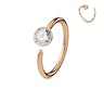 Simpele sieraden zijn vaak nog het mooist, en daar is deze simpele, kleine ring met mooie transparante steen een heel goed voorbeeld van. De ring is vooral heel erg geschikt voor de neus, waar het simpele design met de kleine facet geslepen steen goed tot zijn recht komt. Het kan natuurlijk ook heel goed als oorpiercing gebruikt worden, bijvoorbeeld in de helix of tragus.