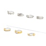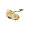 De kant van de ring die in contact komt met je huid is gemaakt van chirurgisch staal, en de versiering is gemaakt van messing. Er zijn veel opties om uit te kiezen, maar de maat is identiek in elk model. De draaddikte van de ring is 0.8 mm. Om 'm in te doen draai je de ring naar voren of naar achteren, zodat 'ie een S vormt: als je 'm eenmaal door je piercing hebt gehaald, sluit 'ie vanzelf.
