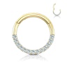 Ring van 14 karaats goud met scharnier en halve cirkel bezet met zirkonieten
