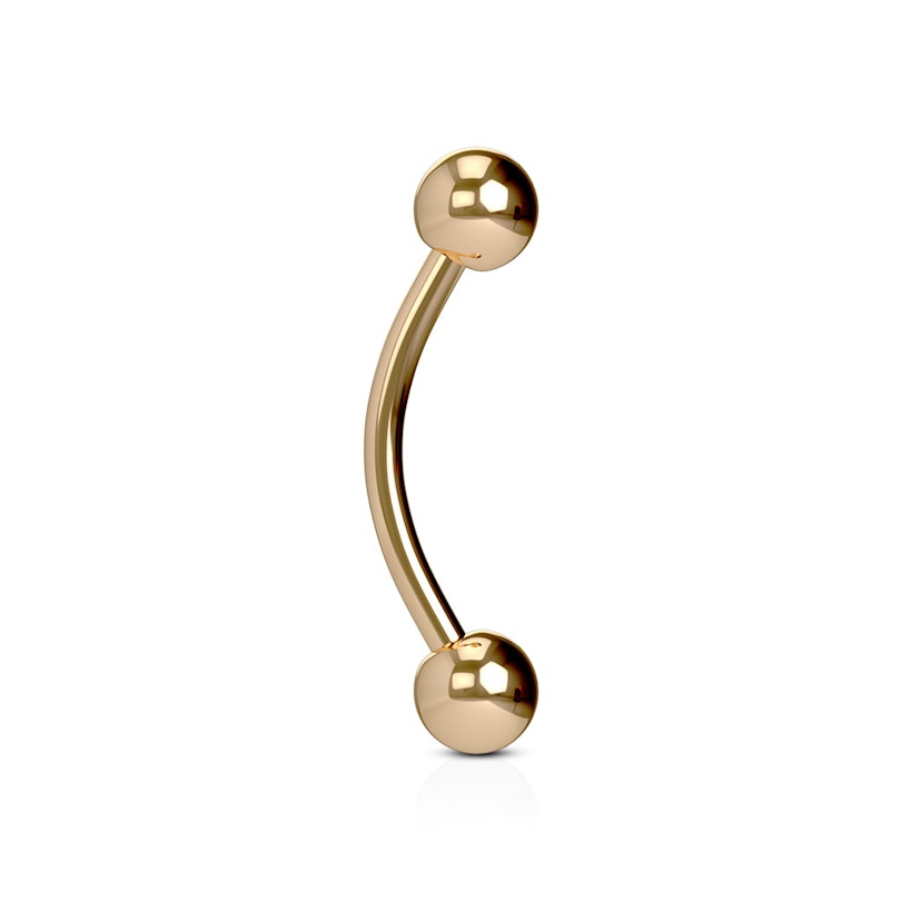 Gebogen piercingstaafjes zijn geschikt voor zowat alle soorten piercings, zolang de staafdikte maar overeenkomt met de diameter van het piercinggaatje. Dat kunnen tepel-, intiem- of zelfs wenkbrauwpiercings zijn. Het staafje wordt gemaakt van massief chirurgisch staal en daarna met een een dunne laag roodgoud gecoat.