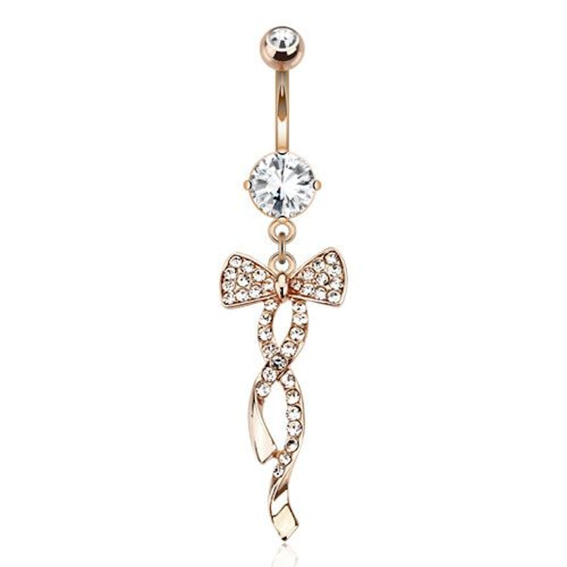 Naam: Navelpiercing met roodgouden coating met strik en steentjes