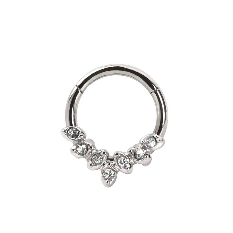 Scharnier ring van chirurgisch staal met 7 CZ blaadjes