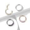 Als je graag vaak je stijl omgooit dan is dit elegante sieraad een echte aanrader. Dankzij een scharnier slotmechanisme hoef je je geen zorgen meer te maken om het kwijtraken van onderdelen of dat gefrunnik tijdens het switchen van je sieraden. Je opent de ring door het scharnier omhoog te duwen, doet het sieraad door je piercing, en klikt het segment weer in elkaar tot je een klik hoort. Zo snel en makkelijk heb je een prachtig sieraad om je te laten stralen!
