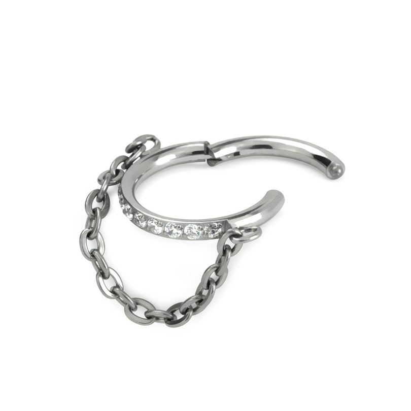 Naam: Scharnierende ring met steentjes en kettinkje
