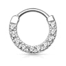 Heb je je zinnen gezet op het kopen van een onwijs mooi en elegante septumpiercing? Dan hebben wij hier het perfecte sieraad voor jou. Deze prachtige septumpiercing is zowel klassiek als overdadig in zijn ontwerp. De cirkelronde halfboog is versierd met 10 prachtige steentjes die prachtig schitteren op een rijtje.