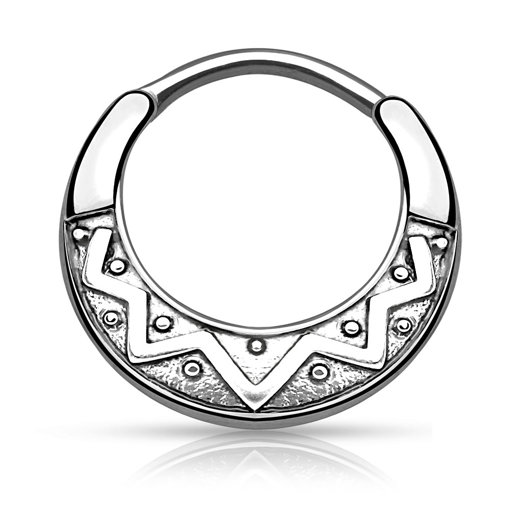 Als je graag unieke en opvallende sieraden draagt, dan heb je hier echt een goed en mooi sieraad gevonden voor je septumpiercing. Het sieraad dat je hier ziet is een septumclicker, waarbij je alleen de kleine staaf in klikt om hem te openen en te sluiten. De staaf is tegelijkertijd ook het deel van het sieraad dat door de piercing zelf gaat.