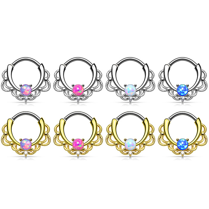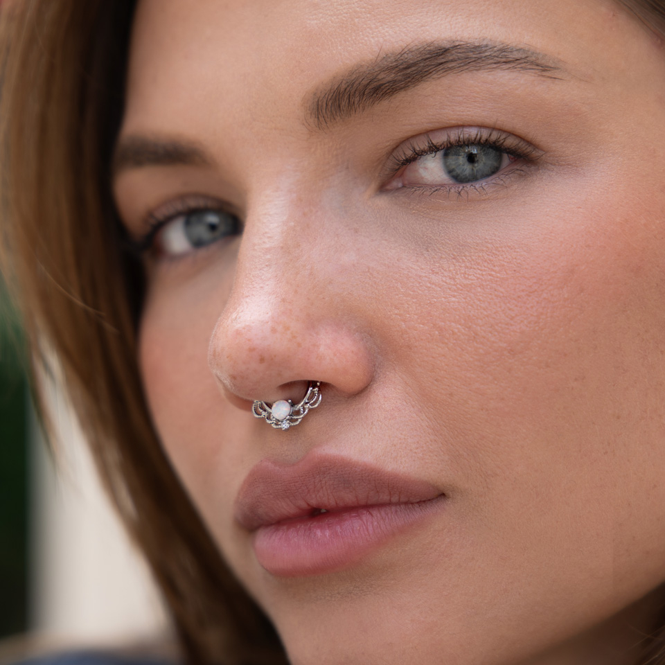 Septumpiercing met opaalsteen en kettingdesign