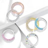 Het is je waarschijnlijk al opgevallen dat er verschillende steentjes onderaan het sieraad zitten: de helft van de ring die niet in je neus of oor blijft is bezaaid! Je kan de kleur van de zirkonia stenen zelf kiezen, bijvoorbeeld turquoise of roze. In beide gouden modellen hebben de steentjes echter altijd een transparante kleur, wat het goud echt laat stralen.