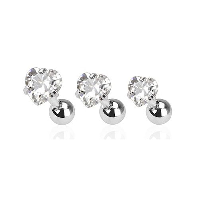 Deze set met drie verschillende sieraden kan je gebruiken voor bijna alle oorpiercings, zolang ze maar met een naald gezet zijn. De drie sieraden zijn identiek qua design maar verschillende in grootte. Ze hebben allemaal een schitterend steentje dat niet rond is maar de vorm van een hart heeft en waar de diameter respectievelijk 3, 4 en 5 mm van is. Hoewel dat dat maar een benadering is want het is moeilijk de diameter op te geven van een sieraad dat niet helemaal rond is.