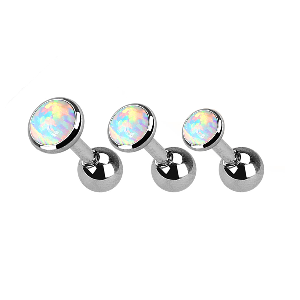 Zeer mooie, glinsterende opaalsteen in de piercings. Een opvallend klein stuk. Ik ben blij dat ik dit heb gekozen.