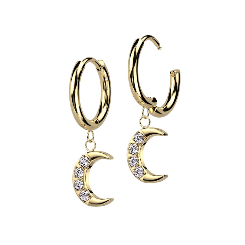De set van ringen met maanhangertjes voegt een zachte, decoratieve touch toe aan je dagelijkse look. Elke ring is versierd met een kleine maanbedel, bezet met steentjes in een nette tandzetting. Zo ontstaat een subtiel detail dat opvalt zonder overheersend te zijn. De ringen zijn afgewerkt met een kliksluiting, waardoor ze makkelijk zijn om in en uit te doen. Je kunt kiezen uit goud- of zilverkleurige varianten.