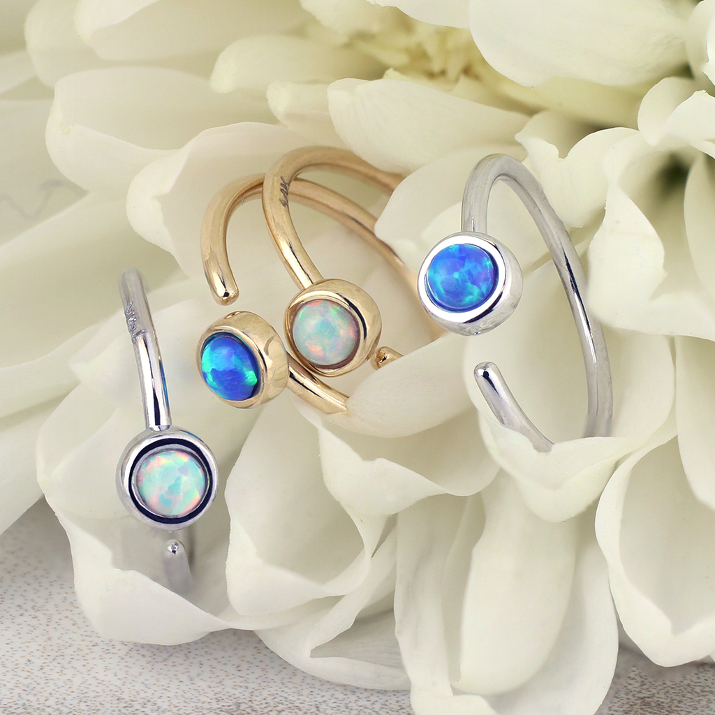 Even als de keuze in materiaal, kun je ook zelf kiezen of je graag een witte opaal of een blauwe opaal wilt hebben. De witten opaal heeft nuancen uiteenlopend van rood, geel en groen, maar de felheid in de steen zal wit zijn. De blauwe opaal heeft blauwe nuancen, zoals lichtblauw, turquoise en donkerblauw.