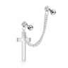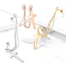 Een prachtige staafjes-set met kristallen steentjes en een kruis, verbonden door een dubbel kettinkje. Die sieraad is een geweldig ontwerp, waarbij je het ene staafje in je helix en het andere staafje in je oorlel kan plaatsen zodat het kettinkje de vorm van je oor volgt.