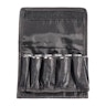 Beide modellen komen met een zwarte etui die niet groter is dan een gewone portemonnee. Je opent en sluit de etui met het klittenband.