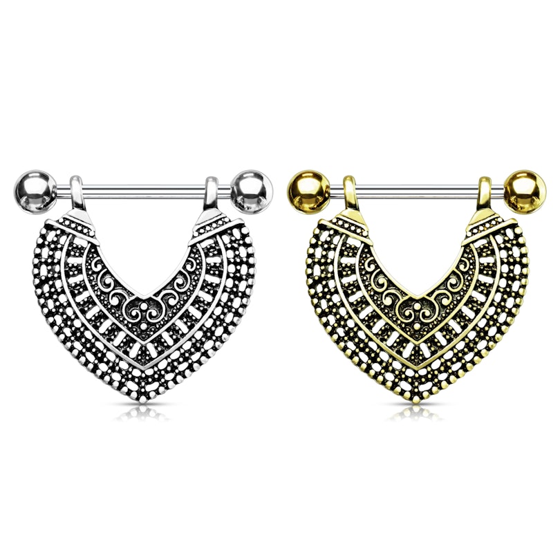 Naam: Tepelpiercing-met-antiek-motief-op-de-hanger