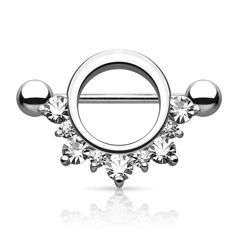 Naam: Tepelpiercing met een boog van steentjes