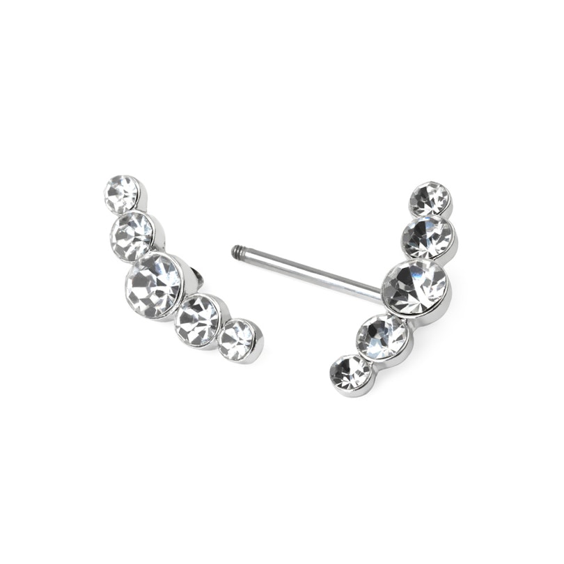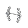 Deze tepelpiercing bestaat uit een rechte staaf met aan beide zijde een verticale boog met stenen. De grootste stenen zitten aan het einde van de stang, hoe verder je van de stang afbeweegt hoe kleiner de stenen worden. De stenen rijen zijn licht gebogen zodat ze de tepels omsluiten. De staaf van de sieraden is gemaakt van chirurgisch staal en is 16mm lang tussen de twee rijen stenen. De dikte van de stang is 1,6mm. Het ontwerp onder de stenen is gemaakt van een gerhodineerde messing. We hebben hier vijf verschillende kleuren om uit te kiezen, dus er zal voor elke smaak en outfit iets te vinden zijn.