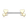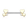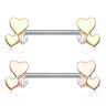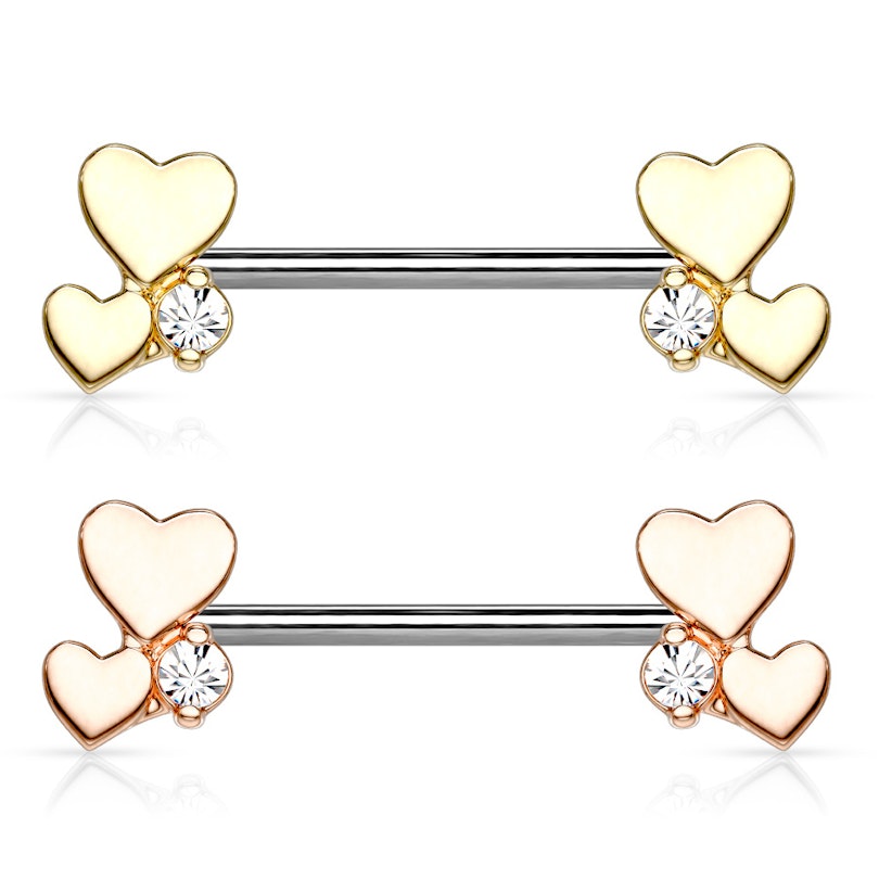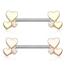 Tepelpiercing met hartjes en steen aan elk uiteinde