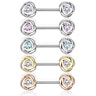 Je kunt zelf kiezen voor welke kleuren en kleuren steentjes in de roosjes je gaat. De roosjes zijn verkrijgbaar in drie verschillende kleuren, waarbij de steentjes bij de goudvarianten altijd transparant zijn - de blank glanzende uitgave heeft verschillende steenkleuren waartussen je kunt kiezen. Een aantal van de rozenblaadjes zijn geperforeerd, zodat je ook nog een klein beetje extra huid kunt zien door de tepelpiercing.