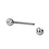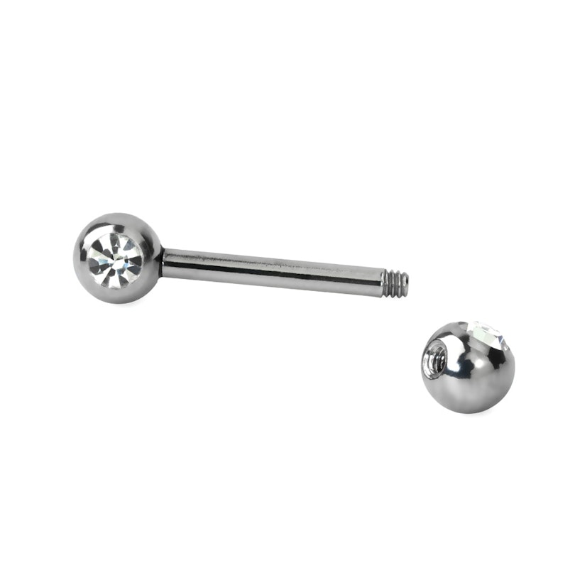 Deze tepelpiercing is heel eenvoudig gehouden. Het is een rechte staaf met twee balletjes - een aan ieder uiteinde. Beide balletjes zijn van een enkele steen voorzien, die niet zoals bij andere piercings naar boven zit, maar juist naar voren wijst. Dit maakt het een ideaal sieraad voor een tepelpiercing, aangezien de steentjes goed zichtbaar zijn. Dat betekent wel, dat het sieraad niet omgedraaid kan worden.