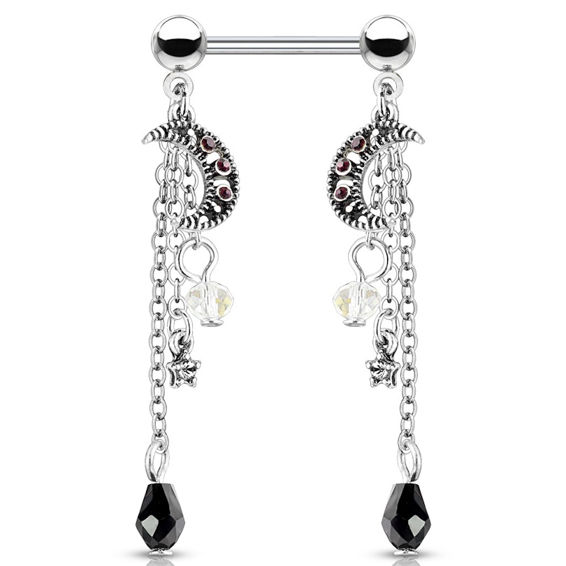 Naam: Tepelpiercing met sterren en maantjes als hanger