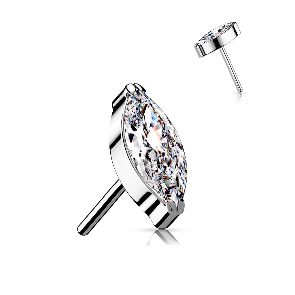 En hadden we al gezegd dat deze top gemaakt is van G23 titanium? Over kwaliteit gesproken - dit sieraad heeft het allemaal. De prachtige marquise steen zit stevig vast aan het materiaal, dus je hoeft ook niet bang te zijn dat hij er zomaar uitvalt.
