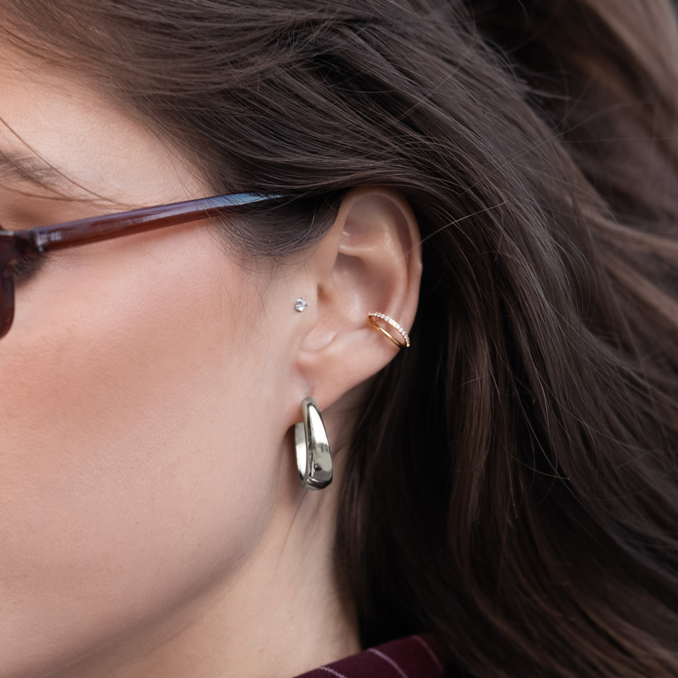 Draag ‘m in je conch, helix, rook, septum, snakebite, spiderbite, tragus, of lower labret… het is je piercings nieuwe BFF.