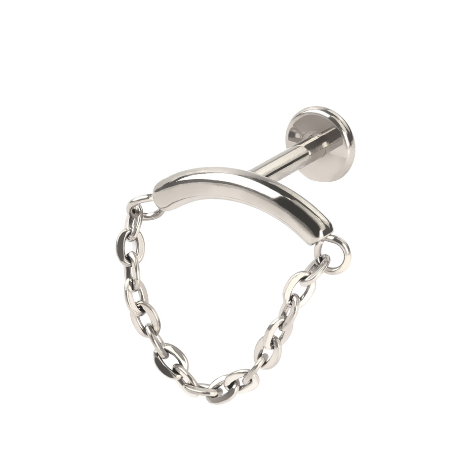 Deze labret heeft een gebogen staafje die perfect in je oor past als je ervoor kiest om hem in je helix piercing te dragen. Hij zal er ook goed uit zien als je hem in je oorlel draagt. Hij heeft een elegante ketting die aan beide kanten vastzit en naar beneden valt.