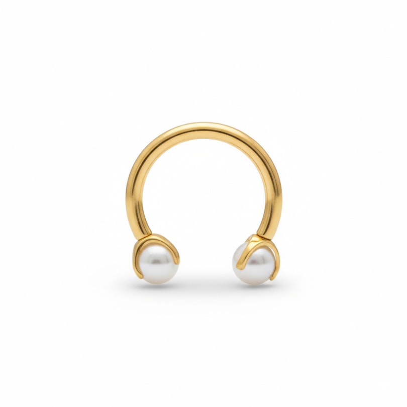Wie zei dat parels alleen voor kettingen zijn? Ontmoet het titanium hoefijzer met parels van Bodymod Trend. Een beetje edgy, een beetje klassiek, en 100% klaar om in jouw piercings te flexen.