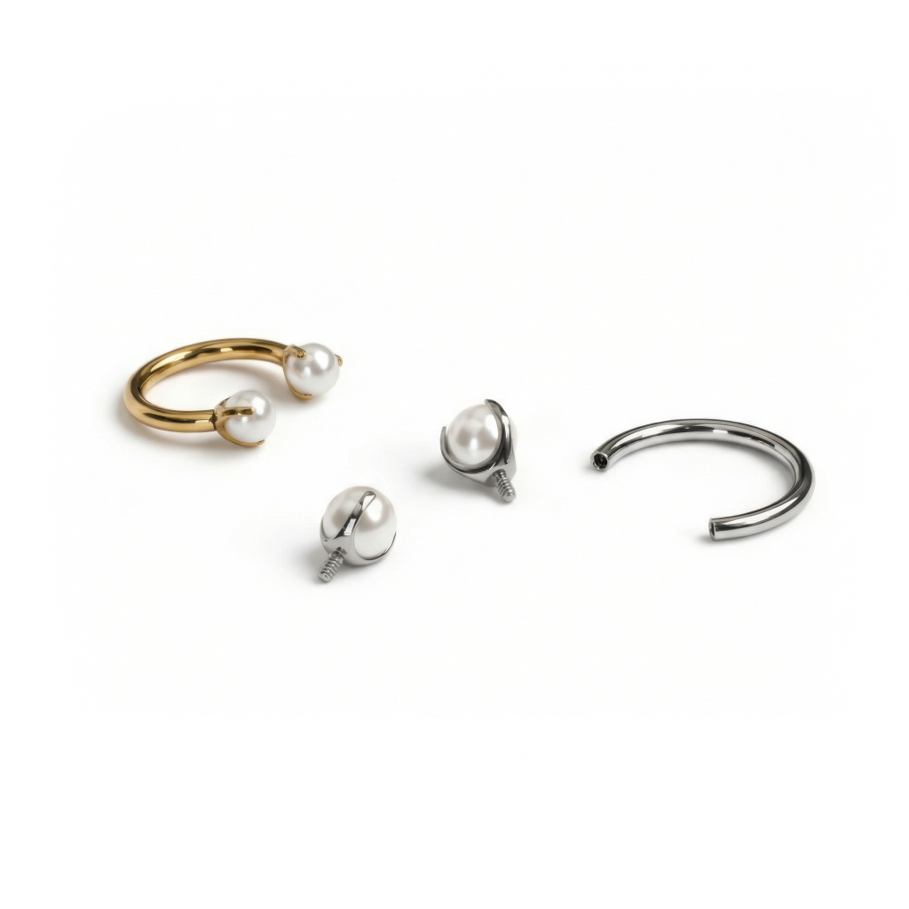 Wie zei dat parels alleen voor kettingen zijn? Ontmoet het titanium hoefijzer met parels van Bodymod Trend. Een beetje edgy, een beetje klassiek, en 100% klaar om in jouw piercings te flexen.