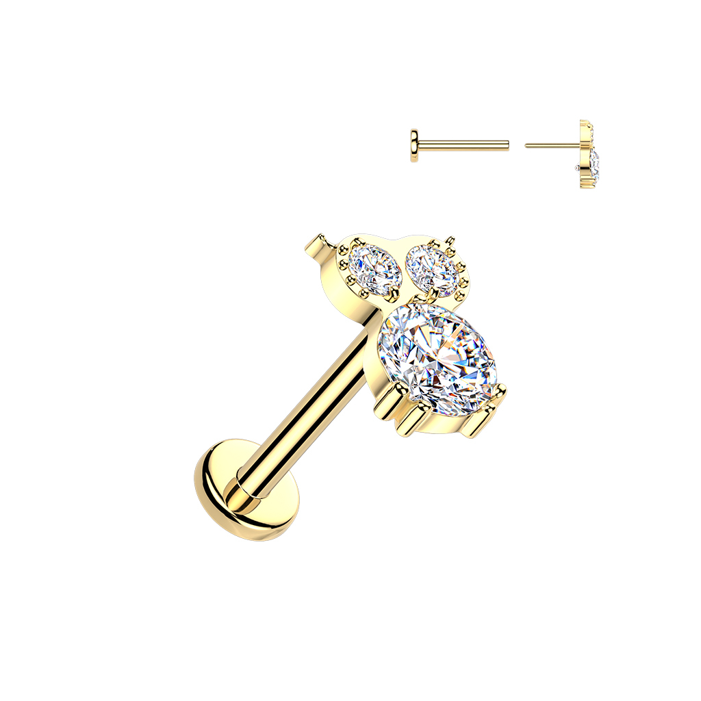 De titanium labret in uilvorm met steentjes geeft je ear stack net wat karakter. Het uiltje is gedetailleerd met meerdere steentjes die netjes in een tandzetting zijn gezet, waardoor het ontwerp meer textuur heeft zonder dat het druk oogt. Verkrijgbaar in gouden en zilveren afwerkingen, ideaal als je iets met vorm en karakter wil in plaats van een minimalistische look.