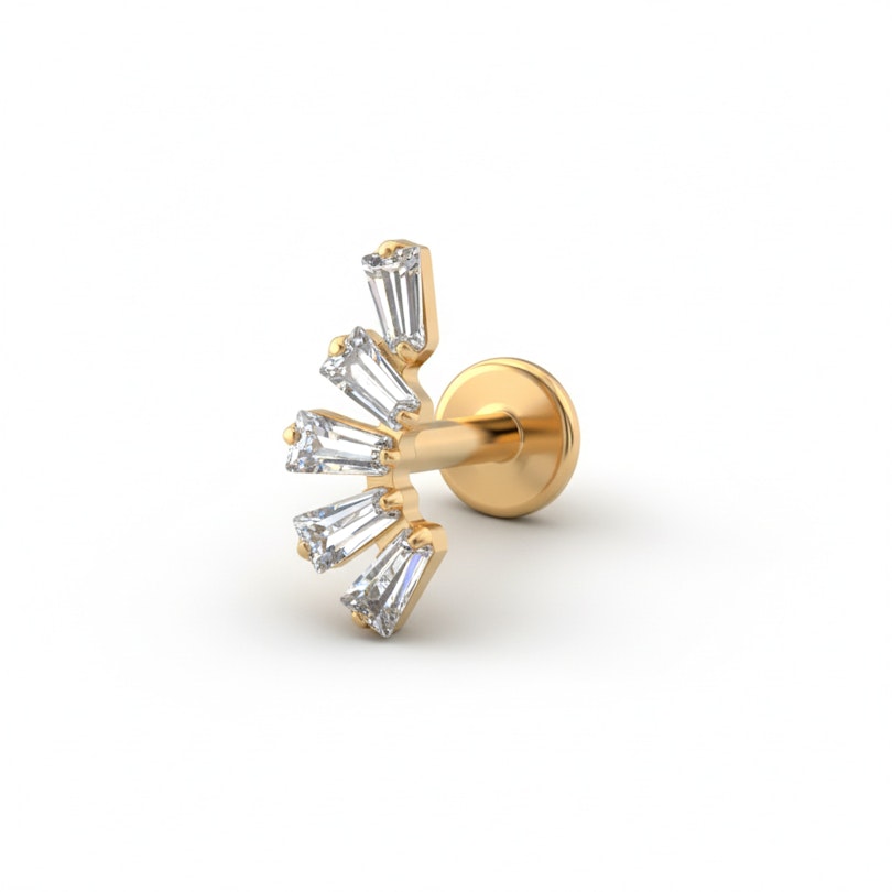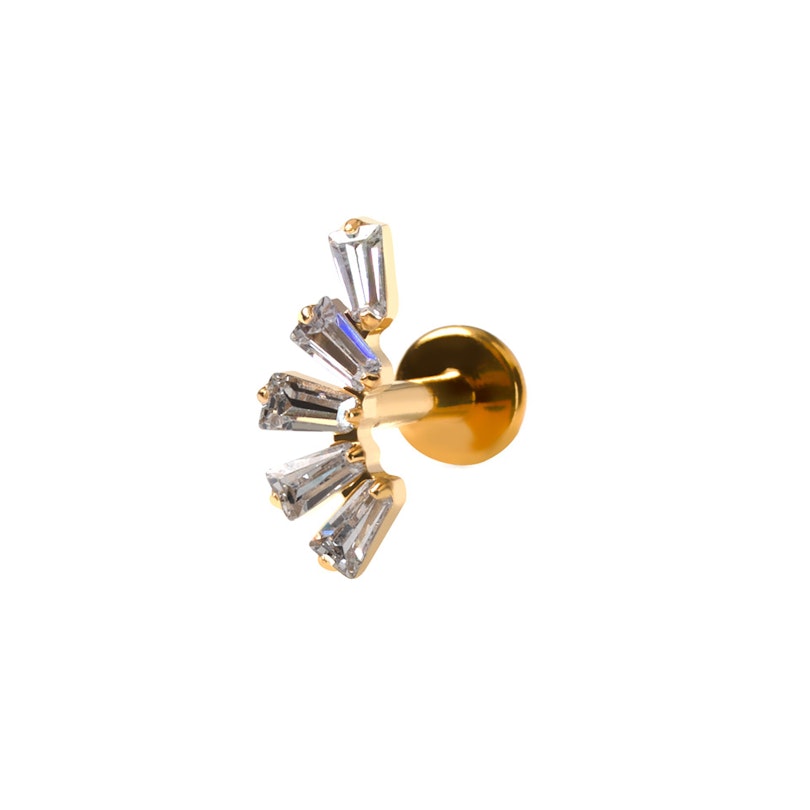 Deze titanium labret met baguette geslepen stenen is gemaakt voor momenten die vragen om structuur. De baguette geslepen stenen zijn netjes en scherp, netes op een rij in je oor voor een look die gaat om balans.
