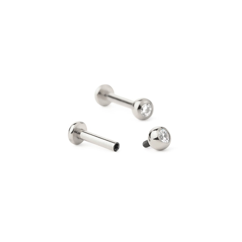 Titanium labret met interne schroefdraad en bal met steentje