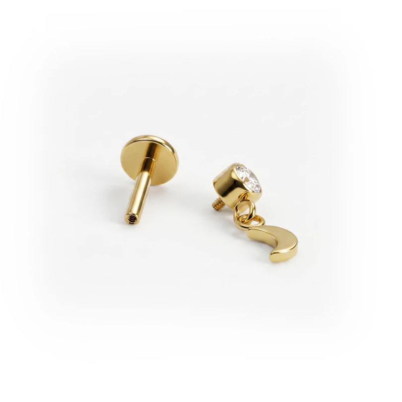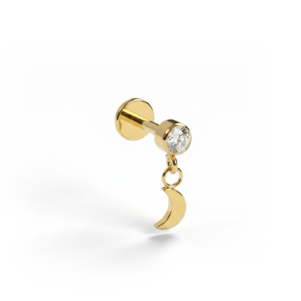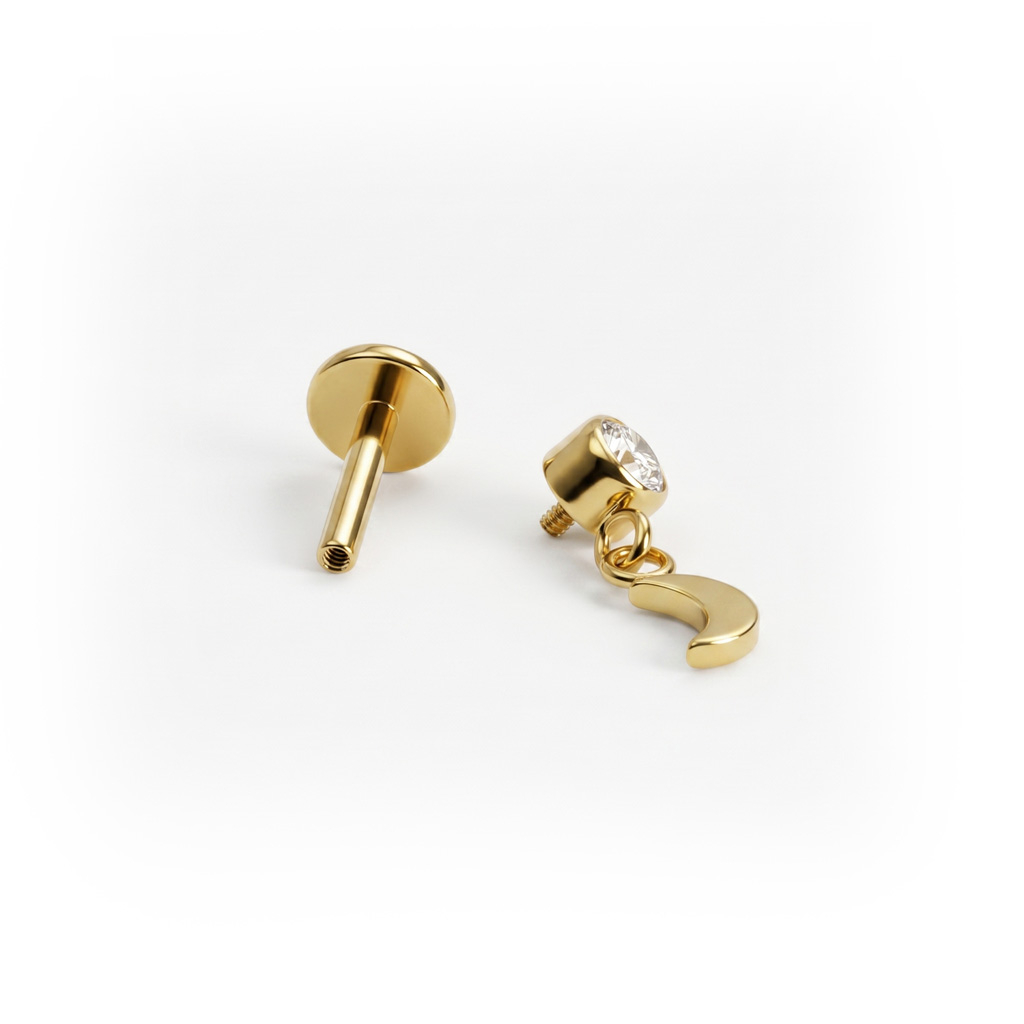 Titanium labret met maanbedeltje