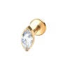 Dit klassieke ontwerp heeft een marquise snit CZ steen, gezet in een titanium labret. De labret heeft een intern schroefdraad, wat betekent dat je simpelweg het gladde staafje door je piercing duwt, en de bovenkant erop schroeft. Dit tijdloze ontwerp is fantastisch voor kraakbeen, oorlel en lip piercings.