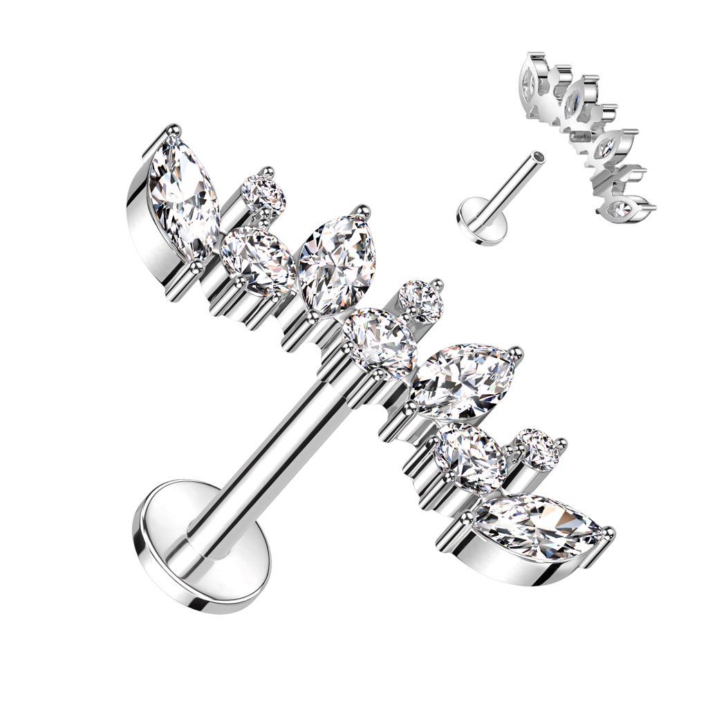 Titanium labret met rondgeslepen steentjes en markies steentjes