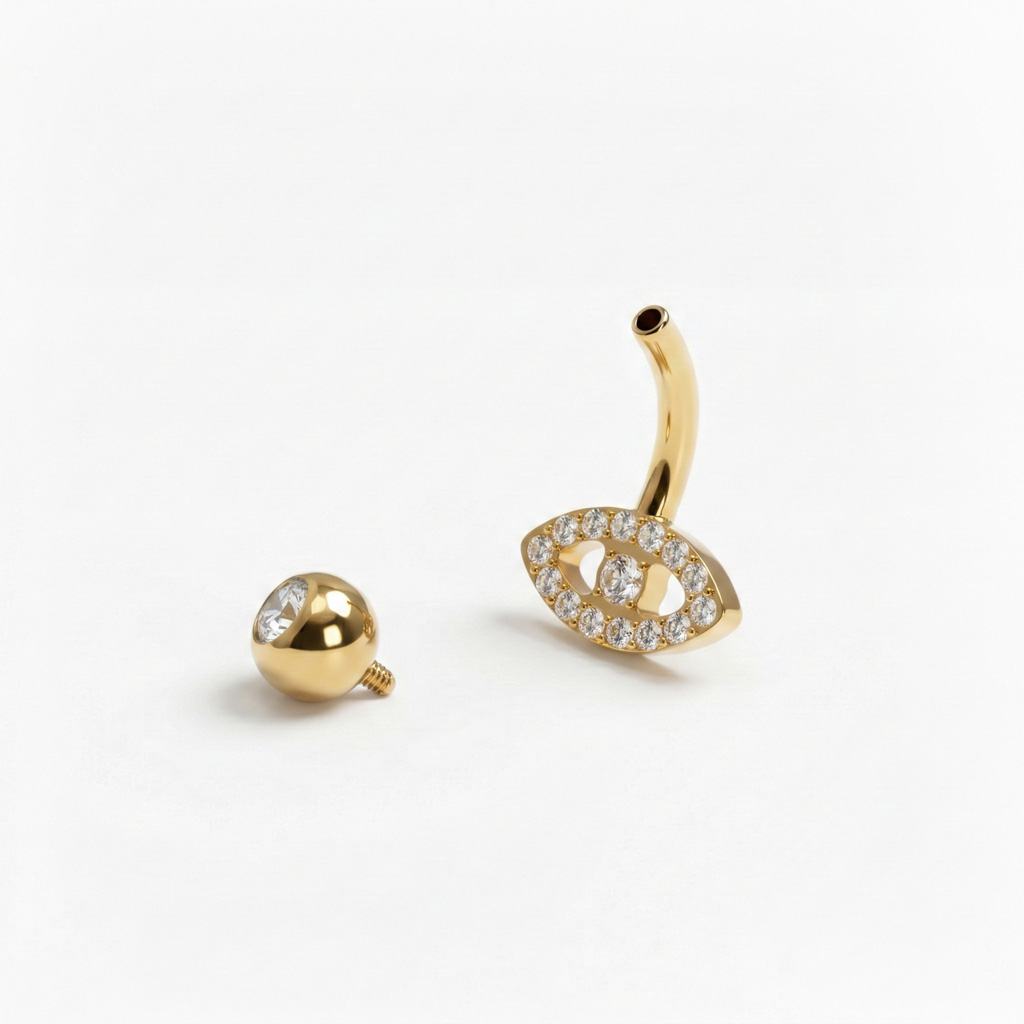Titanium navelbarbell met evil eye