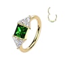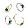 Dit is de upgrade die je piercings nodig hebben. Deze Bodymod Premium titanium ring met centrale groene steen maakt een statement met de gedurfde vierkante centrale steen, gezet aan de zijkanten met twee scherpe witte driehoekige stenen die het licht vangen vanuit elke hoek. Denk strakke geometrie met een kleurtje.