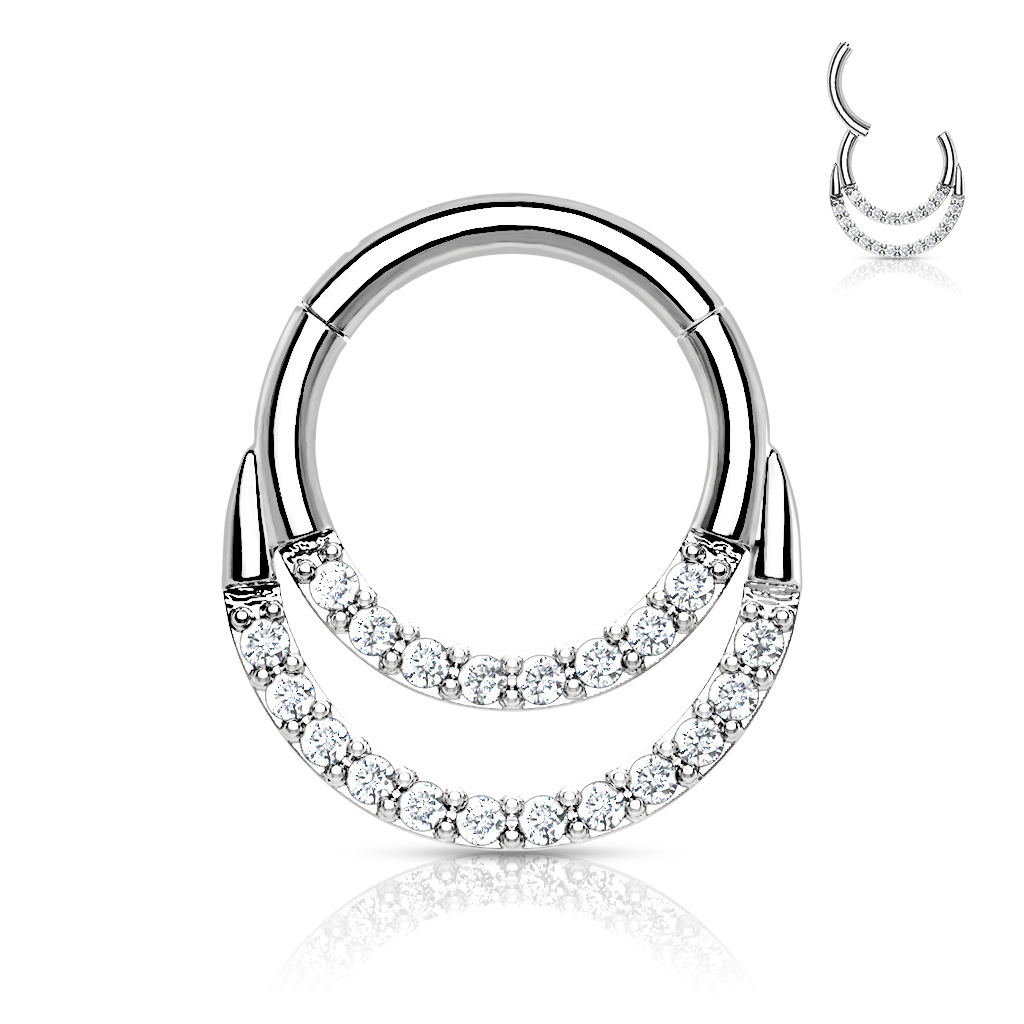 Naam: Titanium ring met scharnier en twee rijen stenen