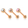 Naam: Tongpiercing met roodgouden coating en steentjes