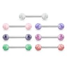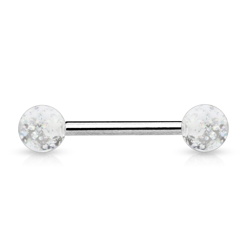 Naam: Tongpiercing uit chirurgisch staal en met acrylballetjes in verschillende kleuren
