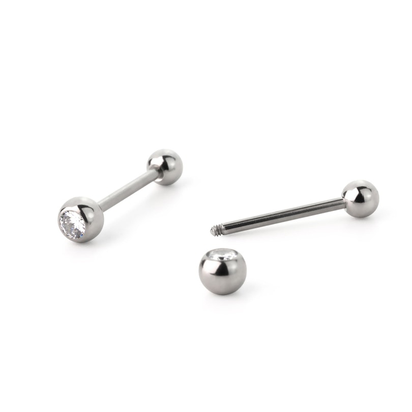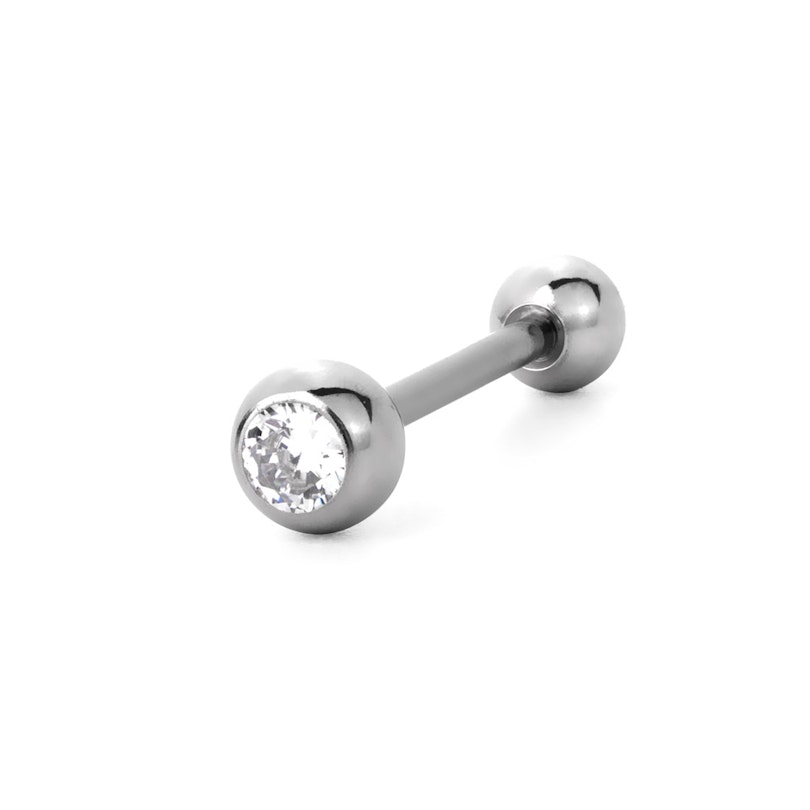 Het sobere design van deze piercing werd opgesmukt met een steentje in het topballetje. Het sieraad is gemaakt van 316L chirurgisch staal, wat beschouwd wordt als beste op de markt.