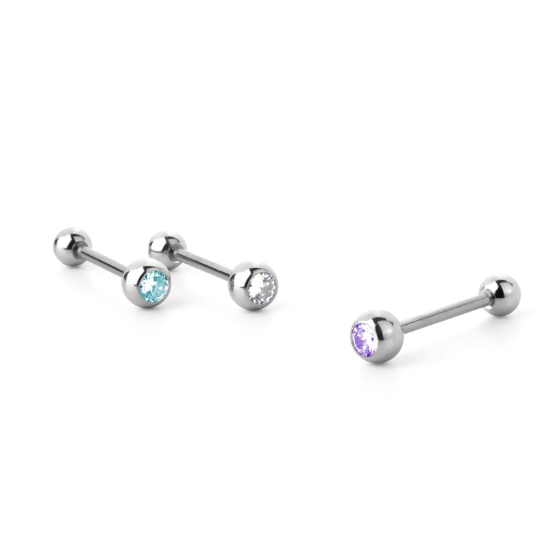 Tongpiercing uit chirurgisch staal met steentjes in verschillende kleuren