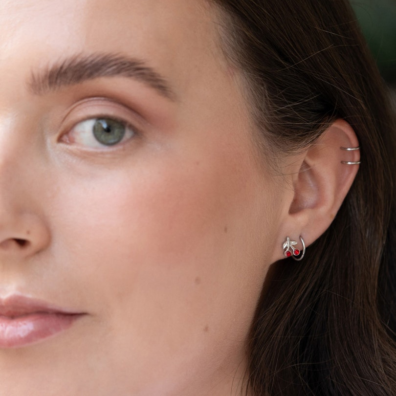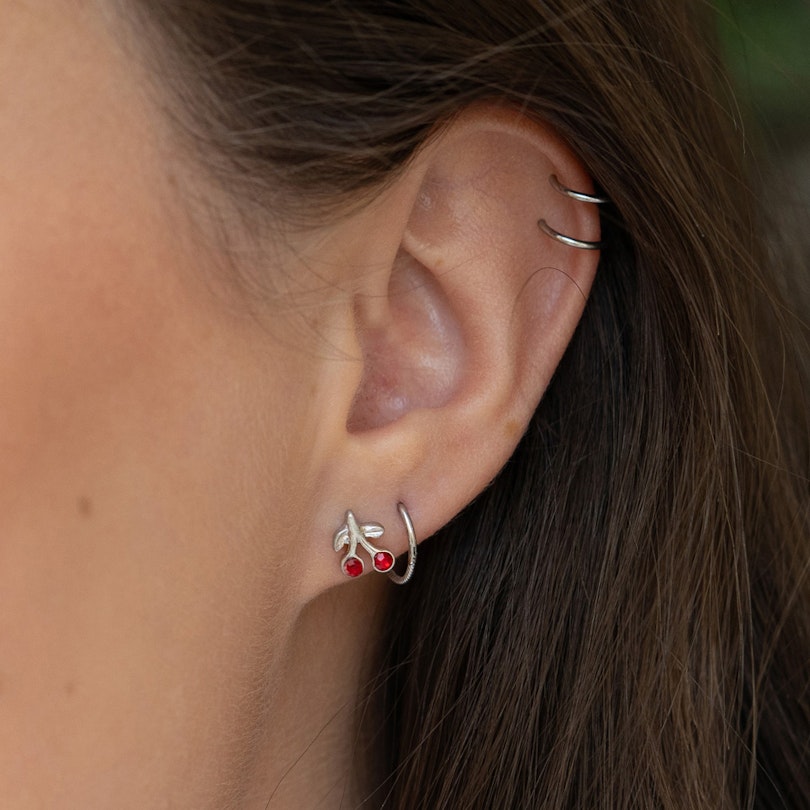 Dit sieraad is ontworpen om in het oor te dragen en in het bijzonder voor traguspiercings. Het staafje van dit sieraad is 6 mm lang en past daarom goed in de meeste piercings. Het is aan de voorkant versierd met twee mooie kersen met een dieprode kleur.