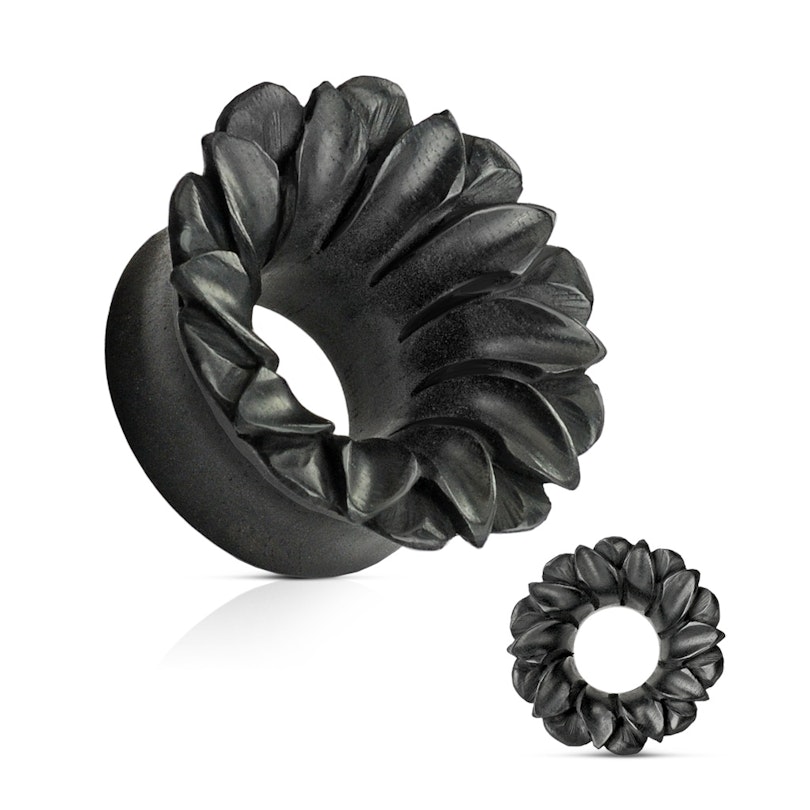 Deze zwarte bloementunnel is gemaakt van organische bomen, die een super materiaal voor piercings leveren dat perfect voor het lichaam is. De tunnel is versierd met een bloemenpatroon aan de voorzijde, waardoor je stretch groter zal lijken. Aangezien het hier om een natuurproduct gaat, willen we er voorts op wijzen dat geen twee dezelfde modellen bestaan, de individuele tunnels kunnen altijd wat in kleur, grootte of structuur verschillen.