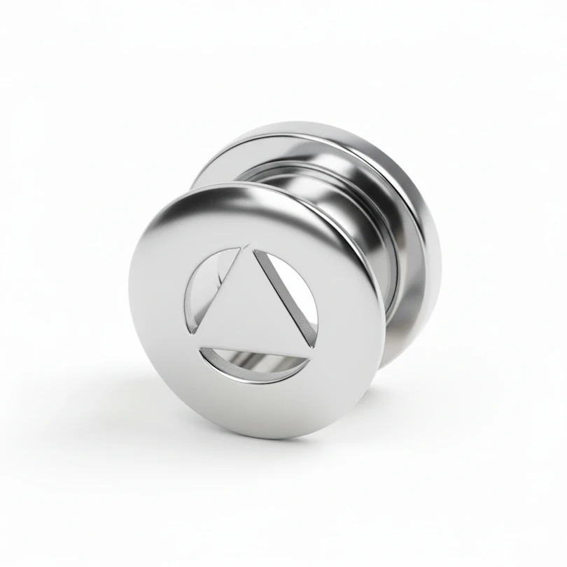 Deze tunnel met driehoekig ontwerp houdt het clean, modern en een tikje verrassend. De geometrische uitsparing geeft uitgerekte oren een strakke upgrade zonder te overdrijven.
