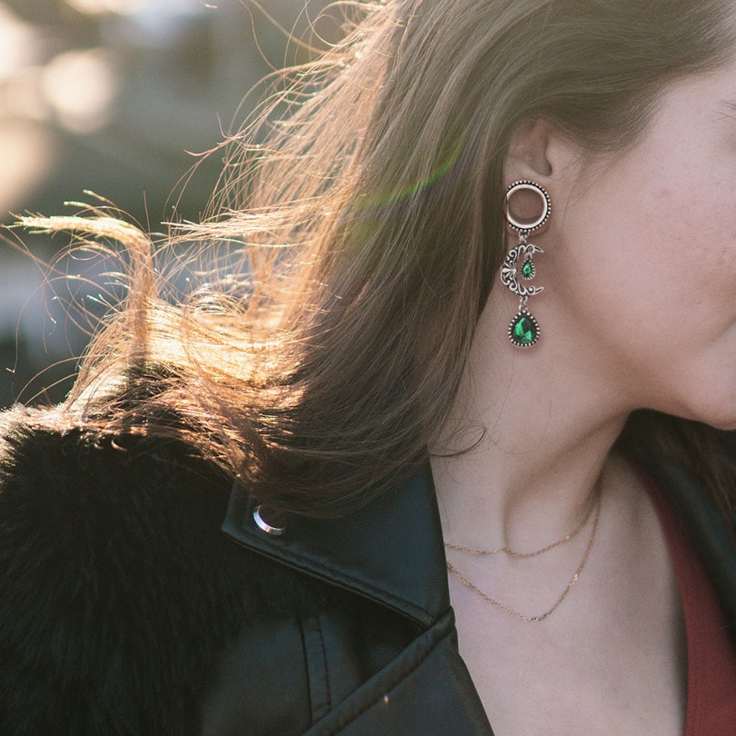 Het overgrote deel van de tunnels bestaat alleen uit de ring zelf - als je geluk hebt zitten er ook enkele decoratieve elementen op. Hier op dit model hebben we een grote stap gezet en een lange hanger aan het sieraad toegevoegd. De focus ligt niet langer op de ring, maar ook op de hanger eronder.