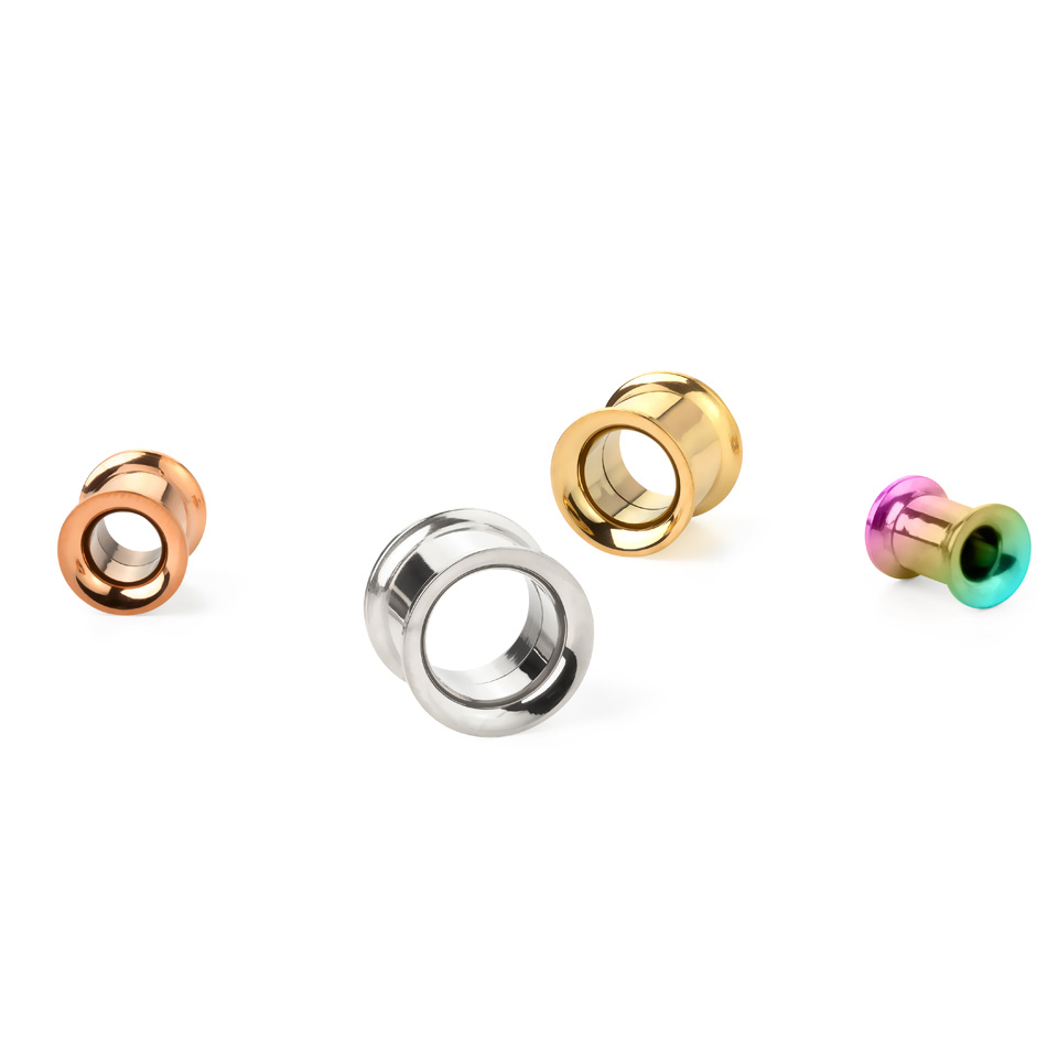 Deze tunnel hebben we in drie verschillende kleuren en afmetingen op voorraad. Omwille van de schroefdraad is het ook ongeloofelijk gemakkelijk om de tunnel in en uit je oor te doen. Je hoeft de tunnel alleen maar los te schroeven, door je stretch te schuiven en opnieuw vast te schroeven. De schroefdraad zal niet in je oor te zien zijn.
