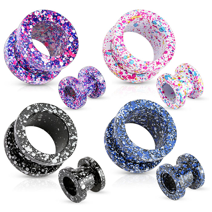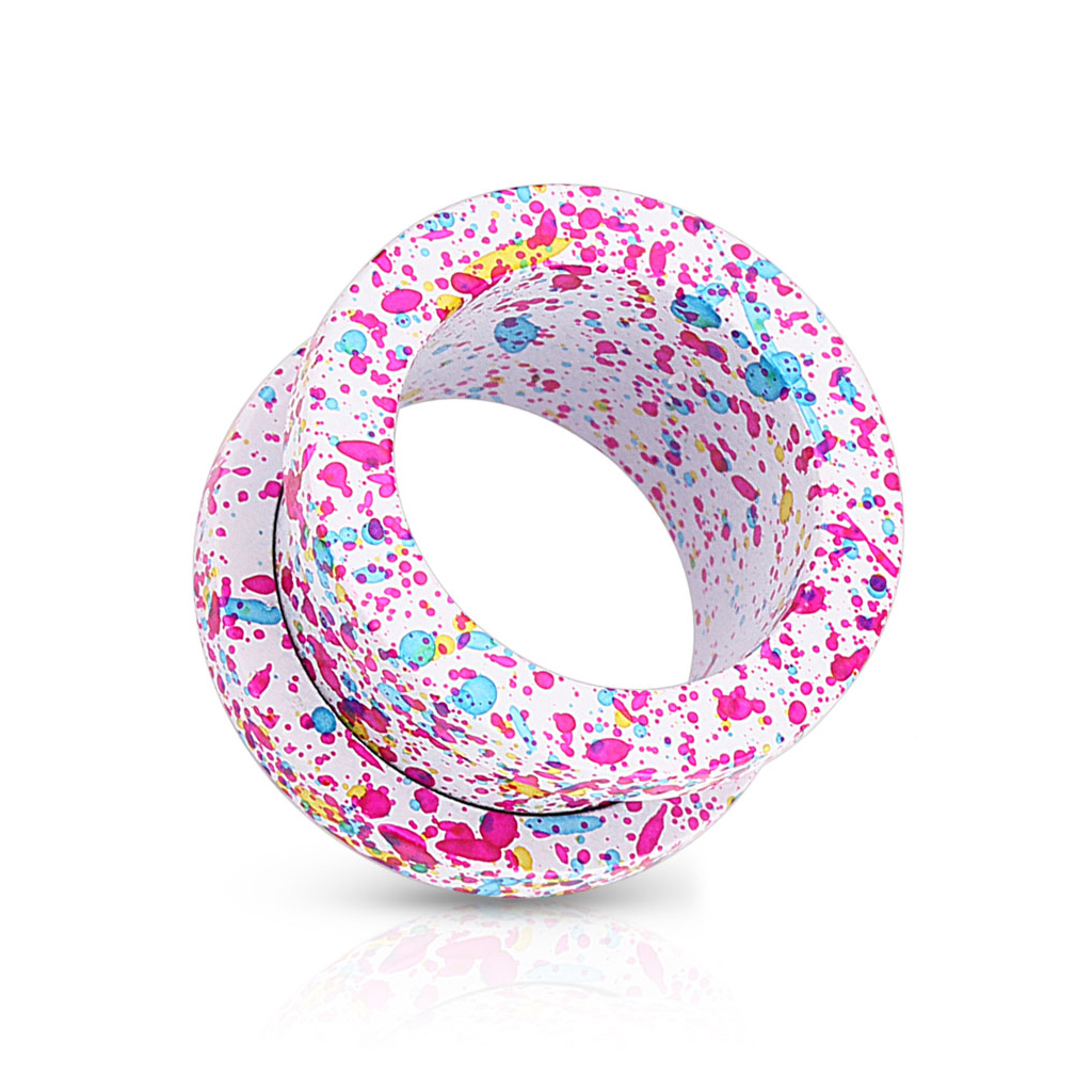 Hier hebben wij een super gave tunnel voor jou als je er echt van houdt om kleuren en spikkels op je stretch sieraden te hebben. Deze coole tunnel is gemaakt van chirurgisch staal en is verkrijgbaar in verschillende groottes en kleuren, beginnend vanaf 3 mm in diameter tot en met 16 mm. Deze mooie tunnel is zo ontworpen dat hij er uit ziet alsof er met een penseel alle kleuren van een palet in 1 keer over het hele sieraad zijn gespetterd. De mooie vlekken zijn in kleuren die elkaar prachtig aanvullen en versterken.
